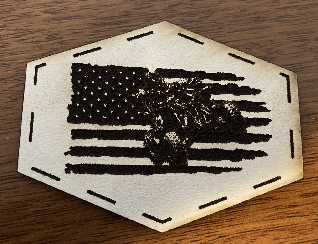 We've switched to leatherette for all of our non-fabric patches. You have the option to buy these with adhesive backing or no backing. Adhesive backing works best with any hat press (or iron if pressing on a flat surface). Non-Adhesive can be adhered with many different types of glues or cements. We are staying with a light brown and dark brown. Please contact us if you are looking for a different color or need genuine leather.