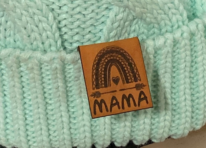 Mama Rainbow Fold-Over Leatherette Beanie Patch