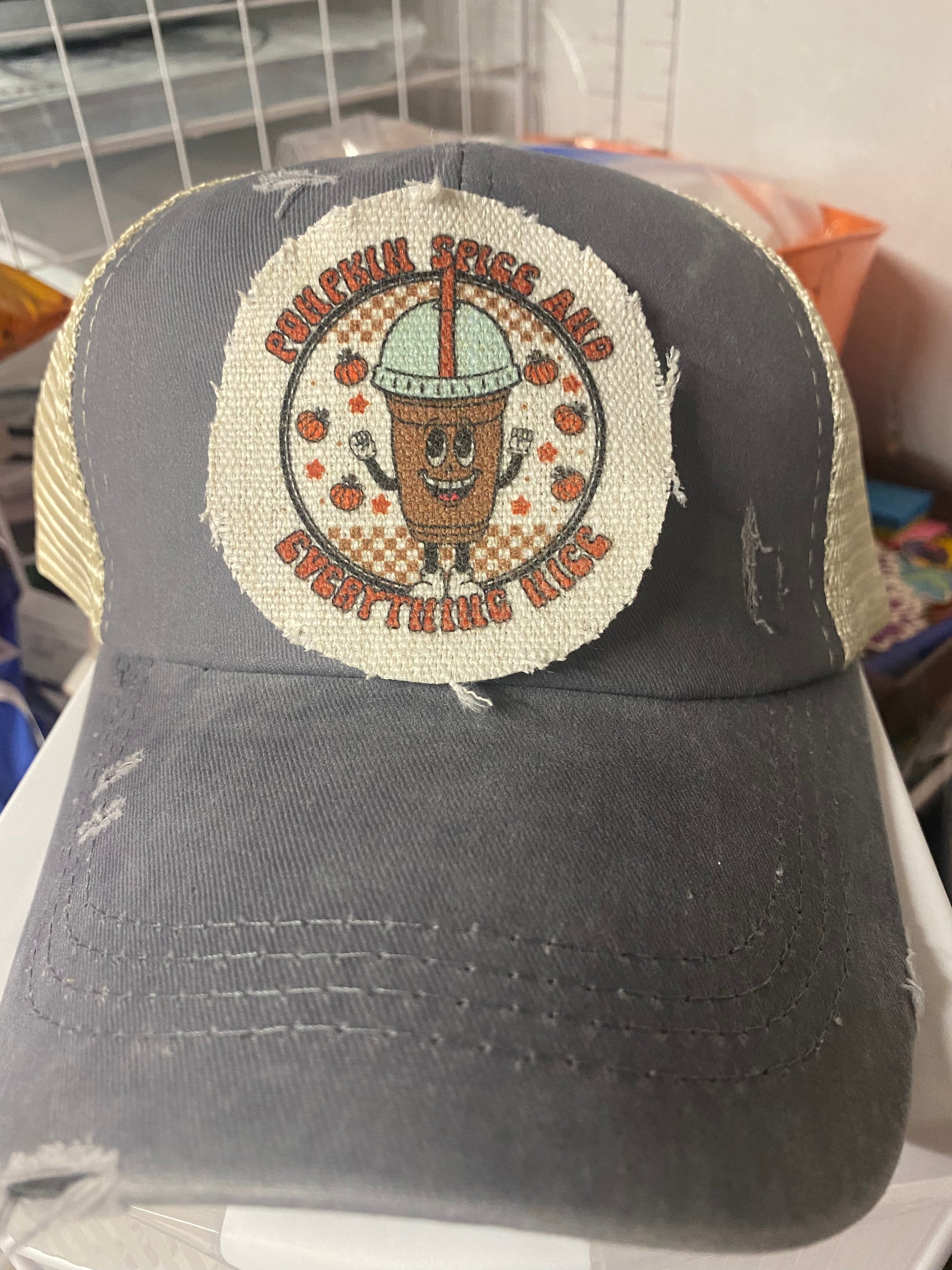 Pumpkin Spice and Everything Nice Circle Hat Patch